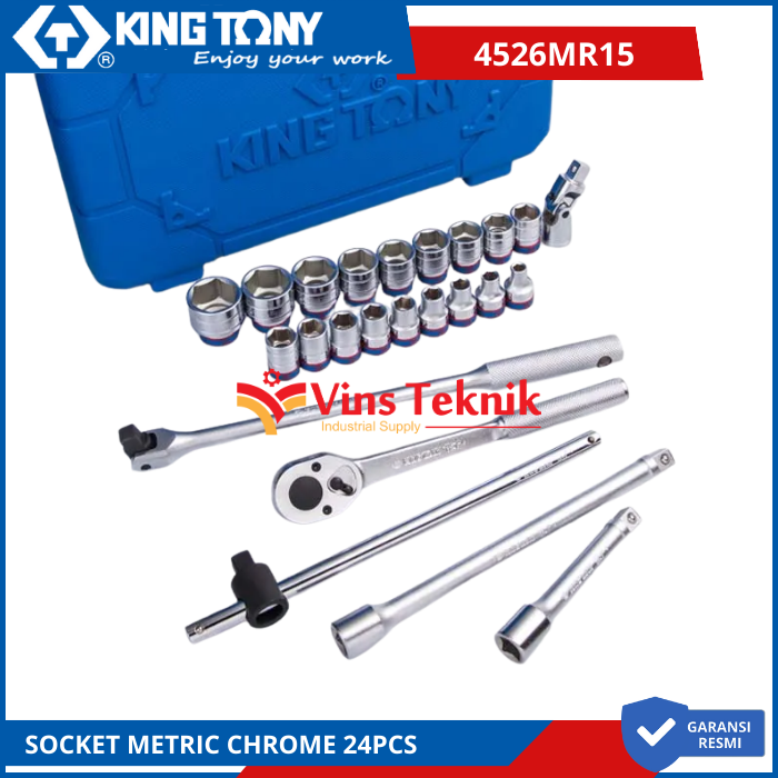 KING TONY 4526MR15 Kunci Socket Metric Chrome - 6PT, 1/2", 24pcs