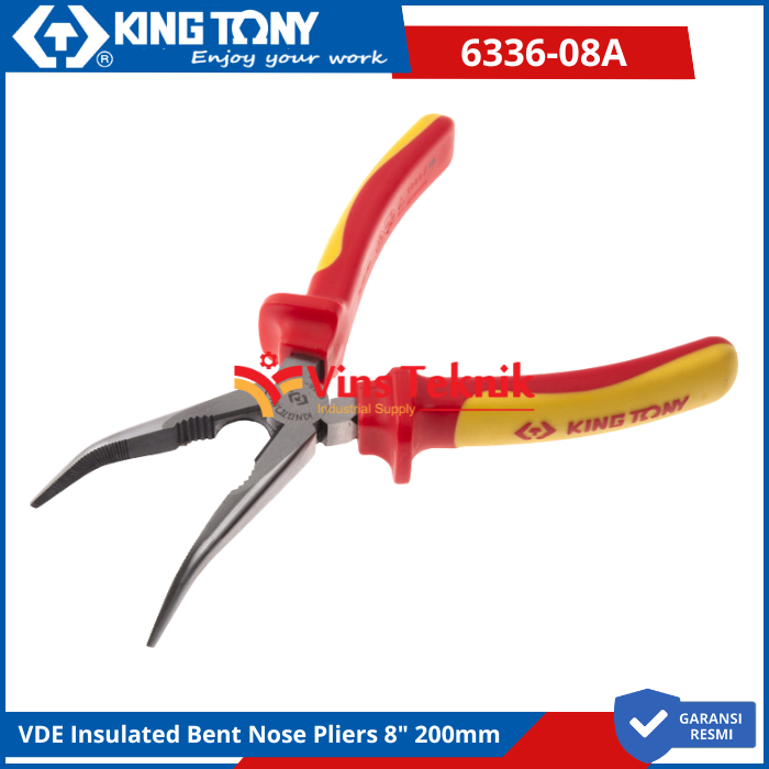 KING TONY 6336-08A Tang Hidung Bengkok VDE Insulated Bent Nose Pliers 8" 200mm