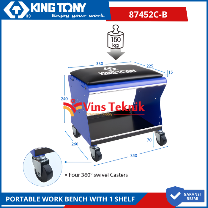 KING TONY 87452C-B Kursi Kerja Portable Rak Metal Portable Stool