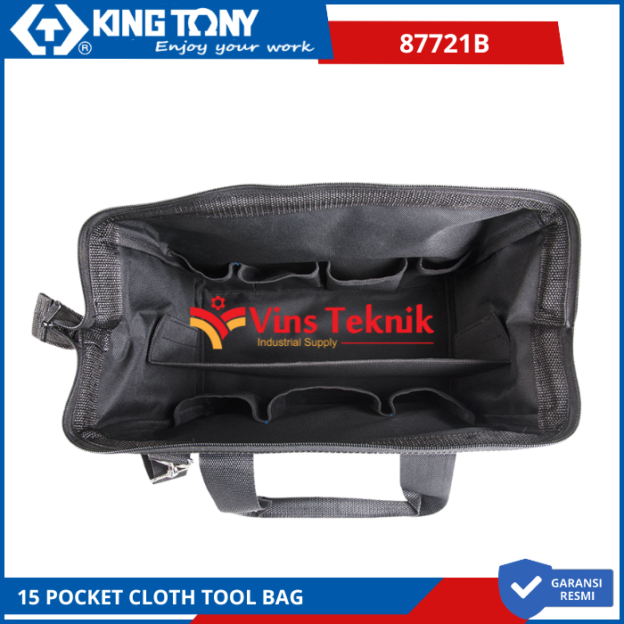 KING TONY 87721B Tool Bag Wide Opening Fabric Tool Bag With 15 Pocket