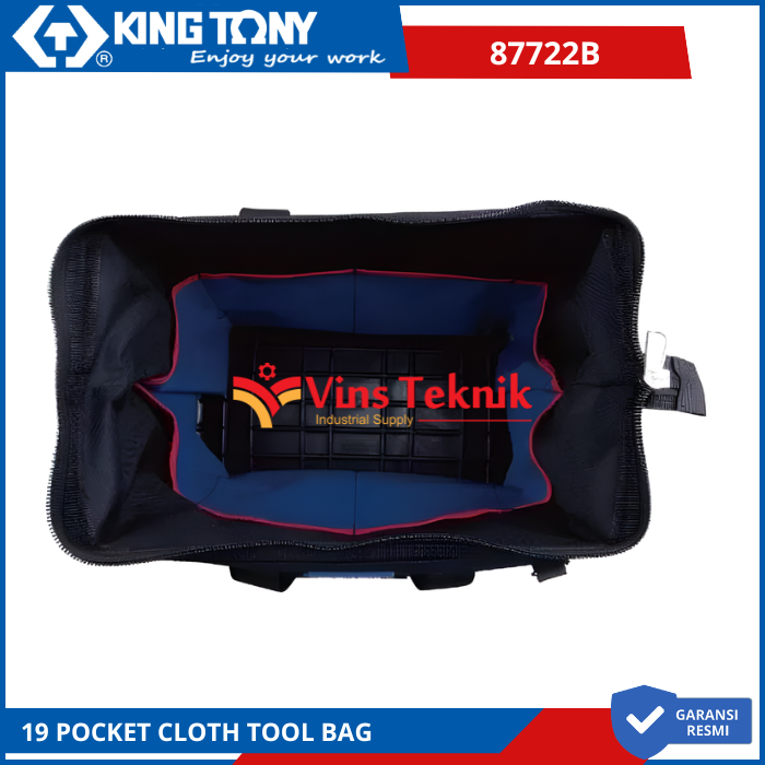 KING TONY 87722B Tool Bag Wide Opening Fabric Tool Bag With 19 Pocket
