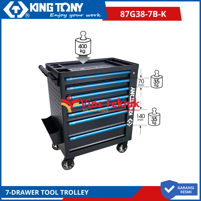 KING TONY 87G38-7B-K Trolli Perkakas 7 Drawer Tool Trolley