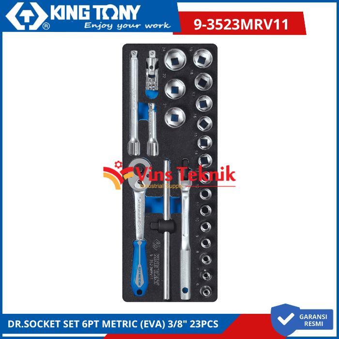 KING TONY 9-3523MRV11 Kunci shocket Dr Socket Set Metric 6PT 3/8" 23pcs