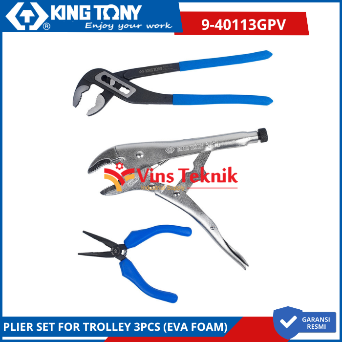 KING TONY 9-40113GPV Tang Set Plier Set For Trolley 3pcs (EVA FOAM)