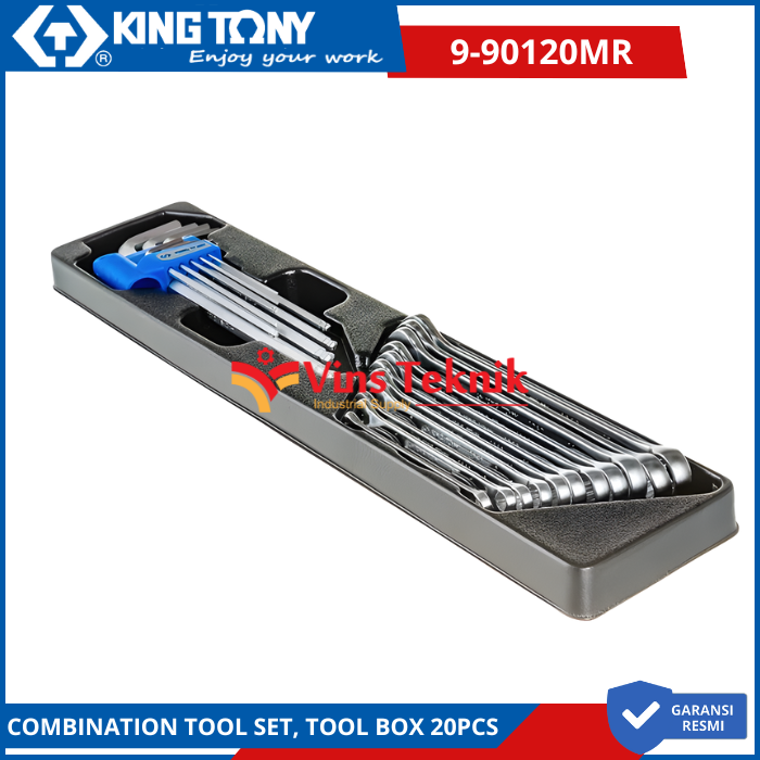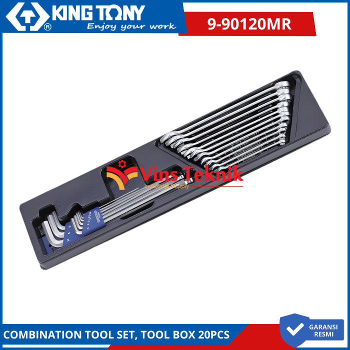 KING TONY 9-90120MR Kunci Ring Pas & Kunci L Set Combination Tool Set For Tool Box 20pcs