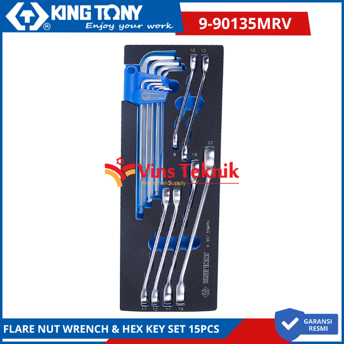 KING TONY 9-90135MRV Kunci Pas & Kunci L Set Flare Nut Wrench & Hex Key Set 15pcs