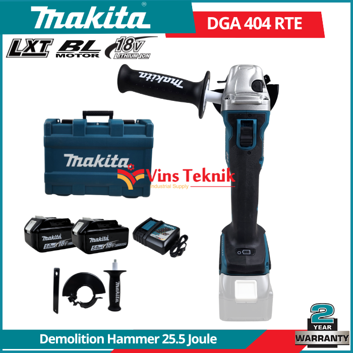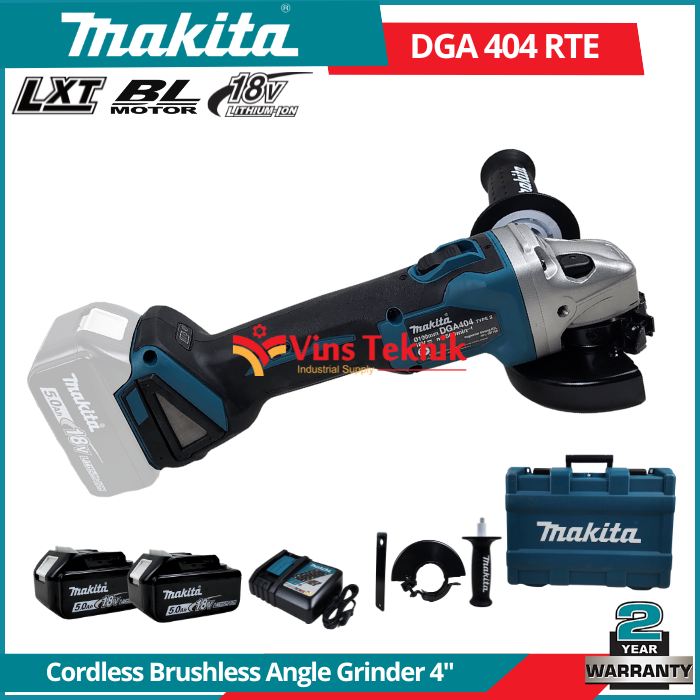 MAKITA DGA404RTE Mesin Gerinda Baterai Cordless Brushless Angle Grinder 4" 100MM 18V DGA 404 RTE