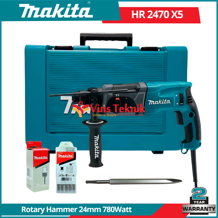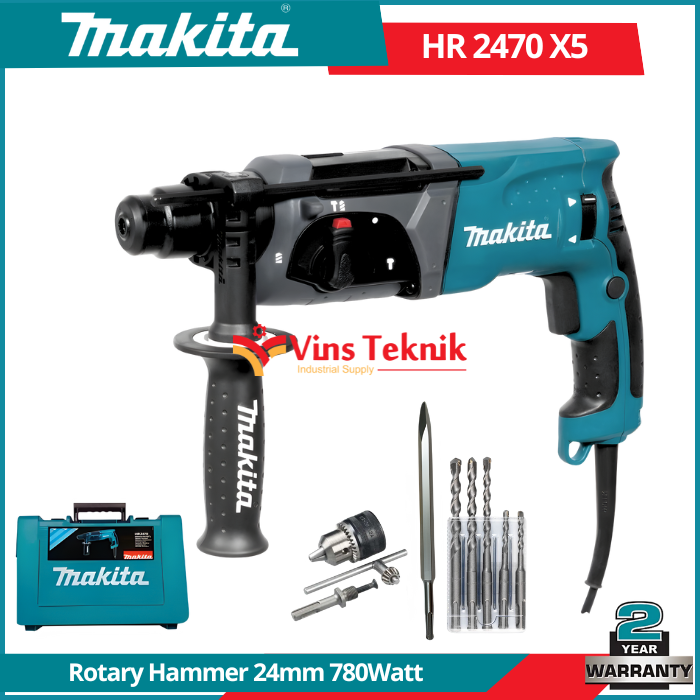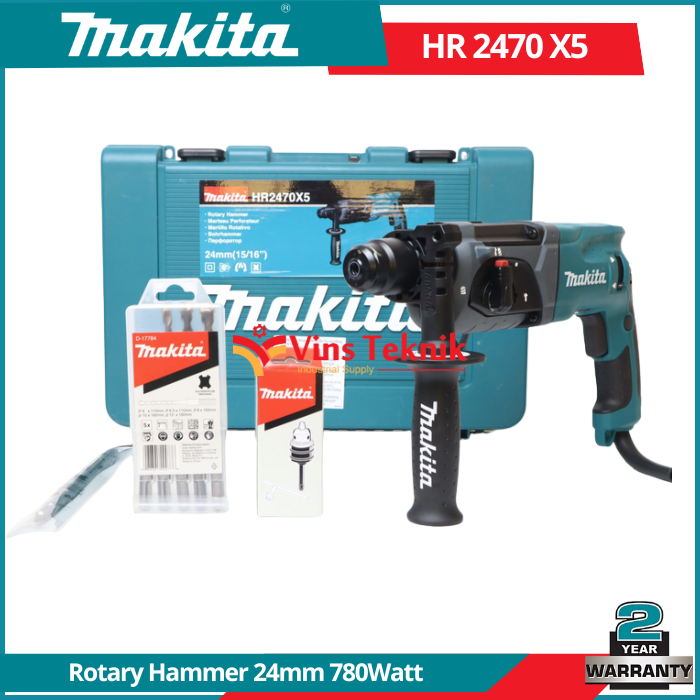 MAKITA HR 2470 X5 Mesin Bor Beton Rotary Hammer 24mm 780Watt SDS Plus HR2470X5