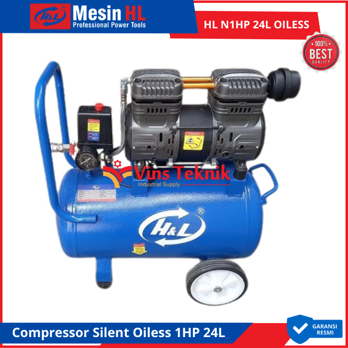 H&L HL N1HP Mesin Kompresor Compressor Silent Oilless 1HP 24Liter HL N1HP