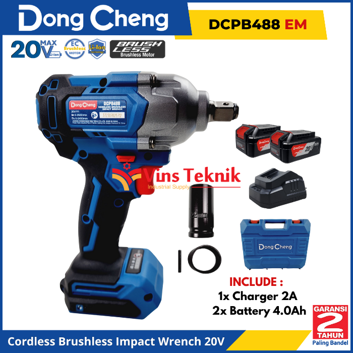 DongCheng DCPB488EM Mesin Pembuka Baut Cordless Brushless Impact Wrench 1/2" 20V DCPB488 EM