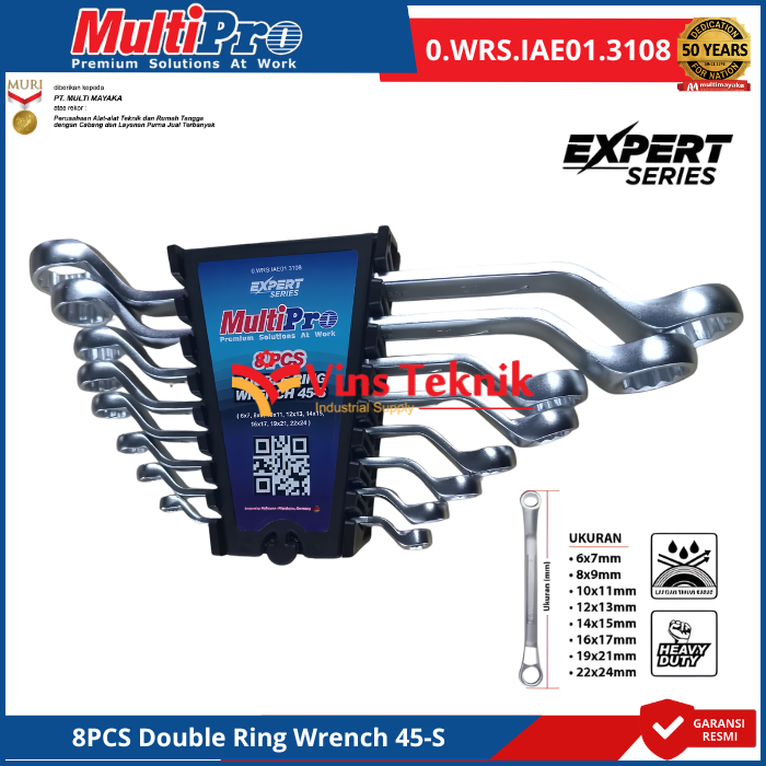 MULTIPRO Kunci Ring Set 8PCS Double Ring Wrench 45-S 6-24MM 0.WRS.IAE01.3108