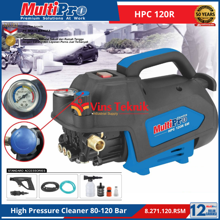 Tekanan Maksimal :... Read More MULTIPRO HPC 120R SM adalah mesin pembersih bertekanan tinggi (jet cleaner) dengan fitur pengatur kecepatan yang cocok untuk membersihkan mobil, motor, AC, dan lantai.
