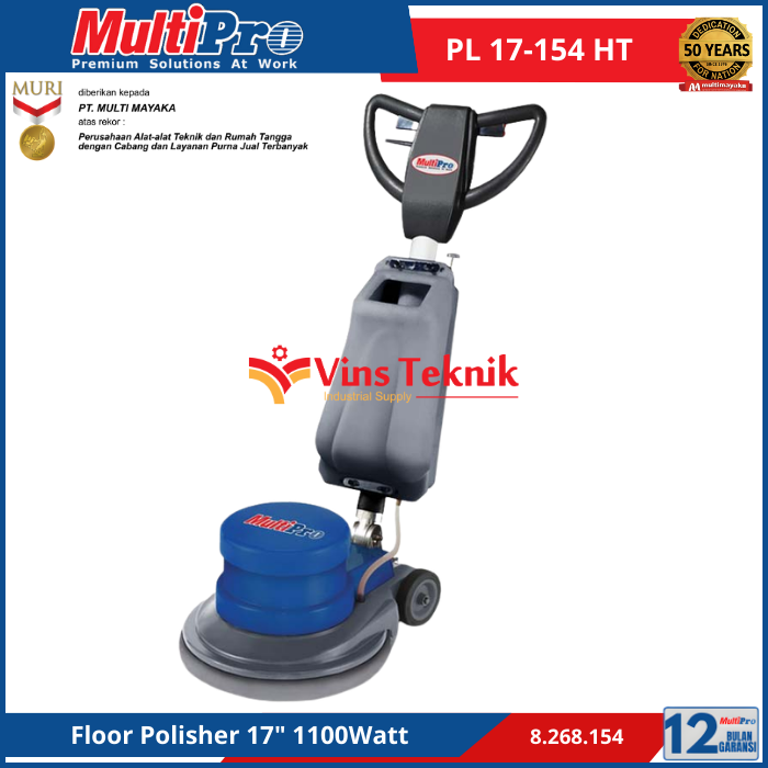Type Sku... Read More Multipro Floor Polisher PL 17-154 HT, adalah mesin pemoles lantai berkecepatan rendah (low speed) yang dirancang untuk membersihkan dan memoles berbagai jenis lantai seperti keramik, ubin, dan marmer.