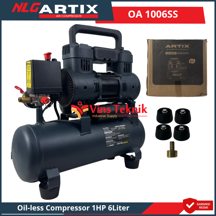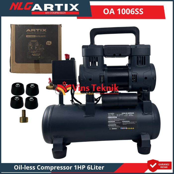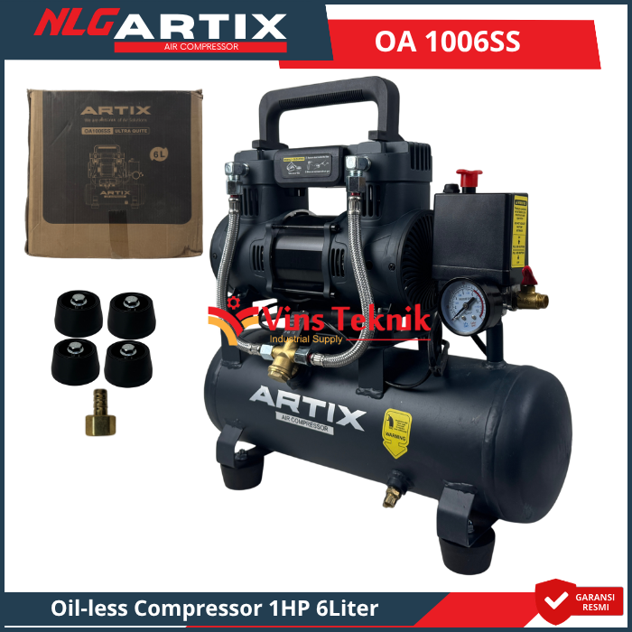 Kompresor Artix OA 1006SS adalah mesin kompresor angin tipe Super Speed Oiless yang dirancang untuk pengisian angin cepat dengan suara mesin yang sangat senyap (silent). Karena teknologi tanpa olinya, udara yang dihasilkan lebih bersih dan mesin lebih mudah dirawat