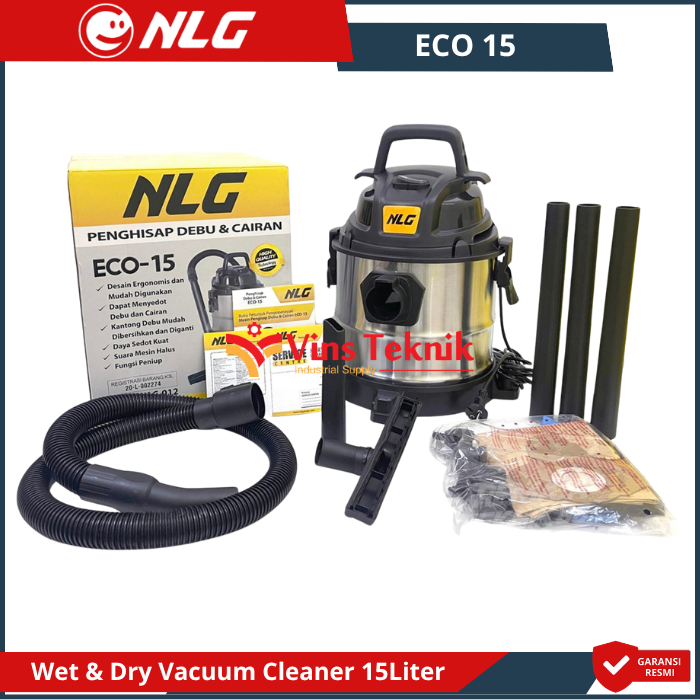 NLG ECO 15 adalah mesin penyedot debu (vacuum cleaner) multifungsi tipe Wet, Dry, & Blow yang dirancang untuk penggunaan rumah tangga maupun usaha cuci mobil.