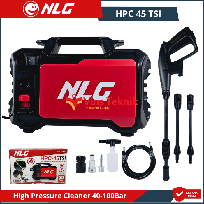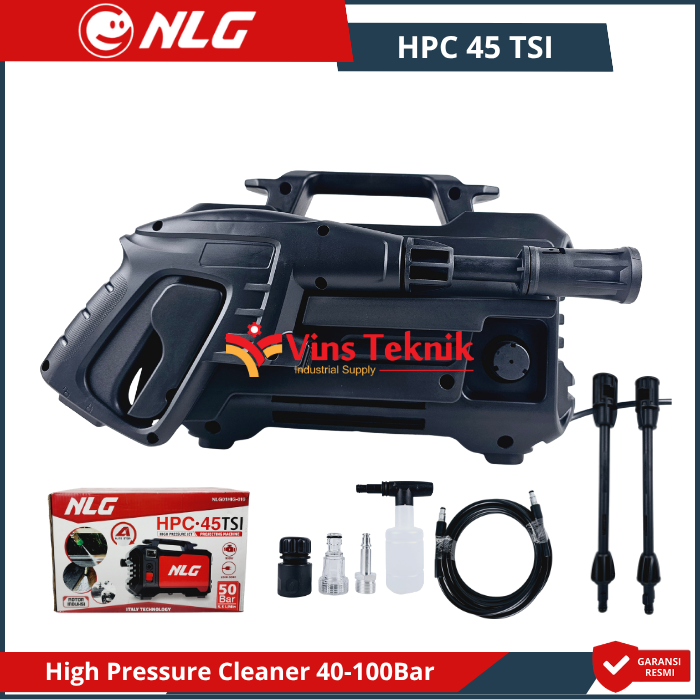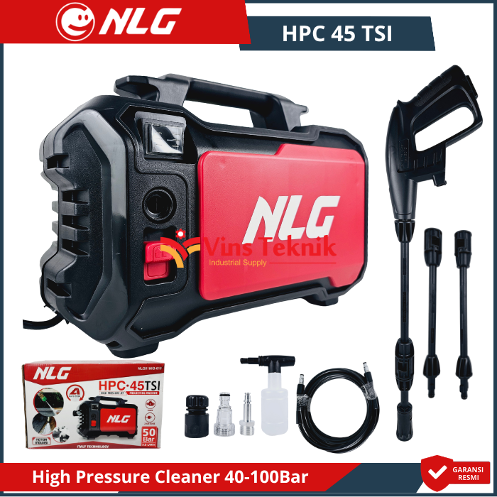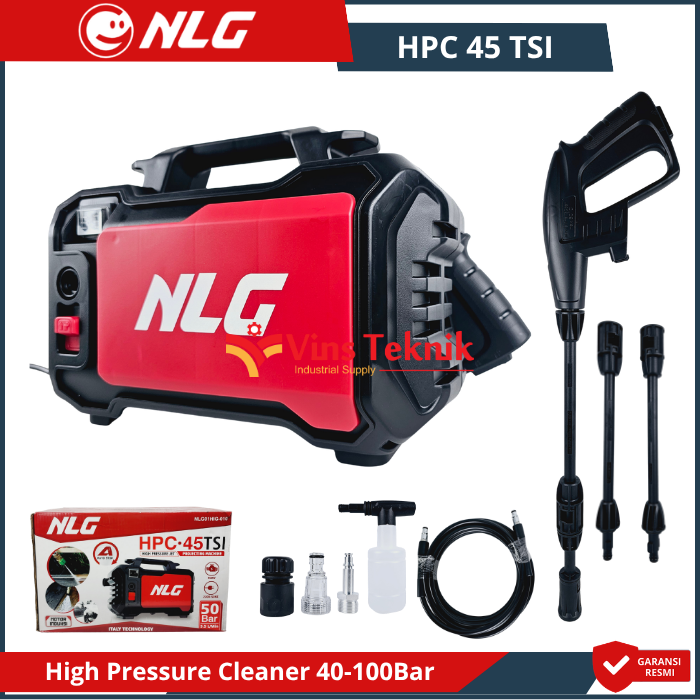 - Nozzle Adjustable: Ujung semprotan... Read More NLG HPC 45 TSI, yang merupakan mesin pembersih tekanan tinggi (jet cleaner), meliputi penggunaan motor induksi yang membuat suara mesin lebih halus (hening) serta lebih awet karena tidak memerlukan penggantian carbon brush.