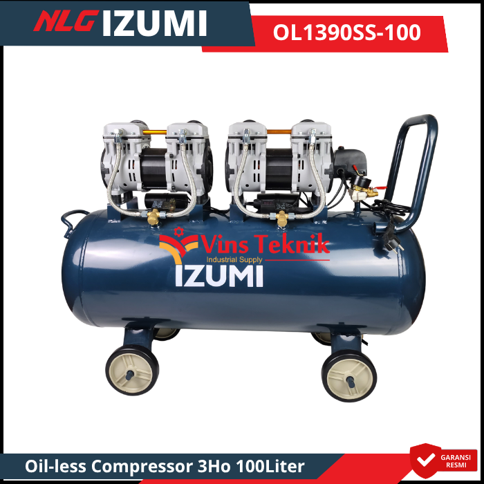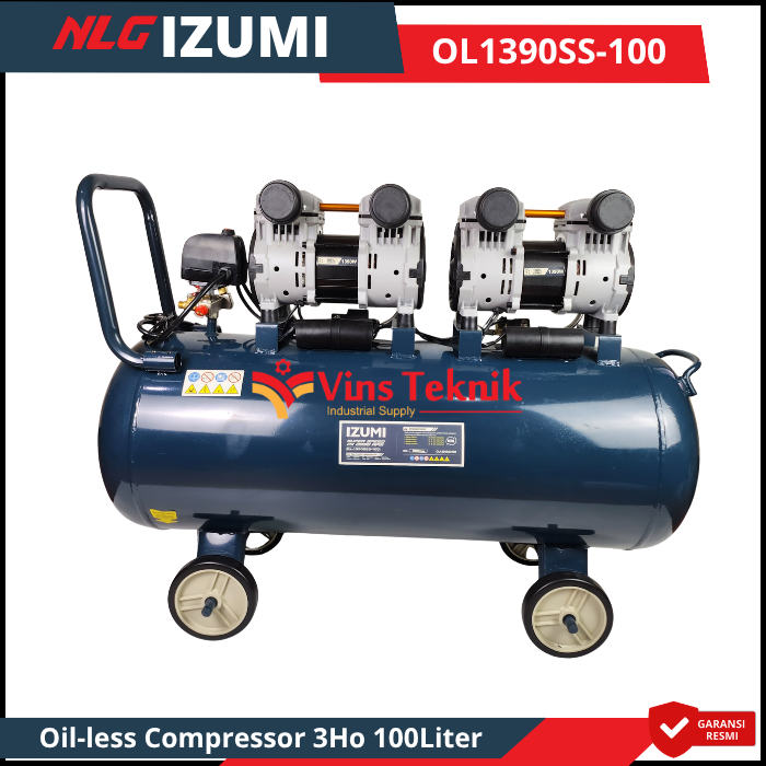 NLG IZUMI OL 1390SS-100 Mesin kompresor Udara Oil-less Compressor 3HP 100Liter OL1390SS-100