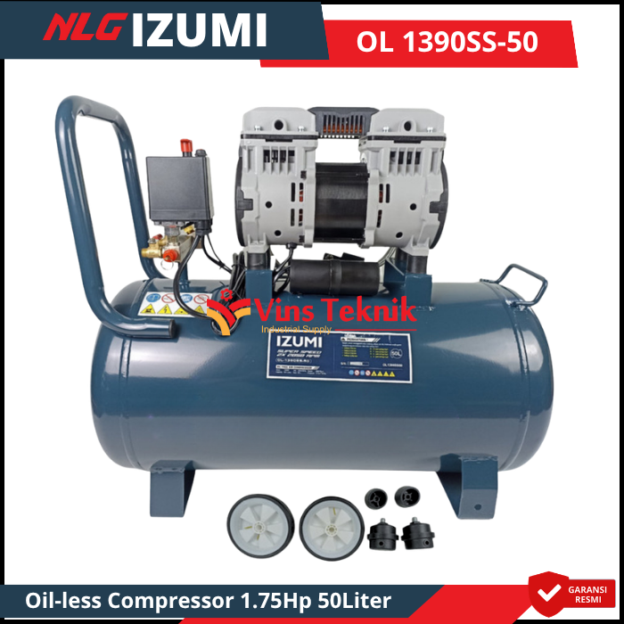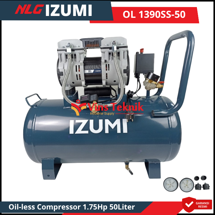 NLG IZUMI OL 1390SS-50 Mesin Kompresor Angin Compressor Oil-less 1.75HP 500Liter OL1390SS-50