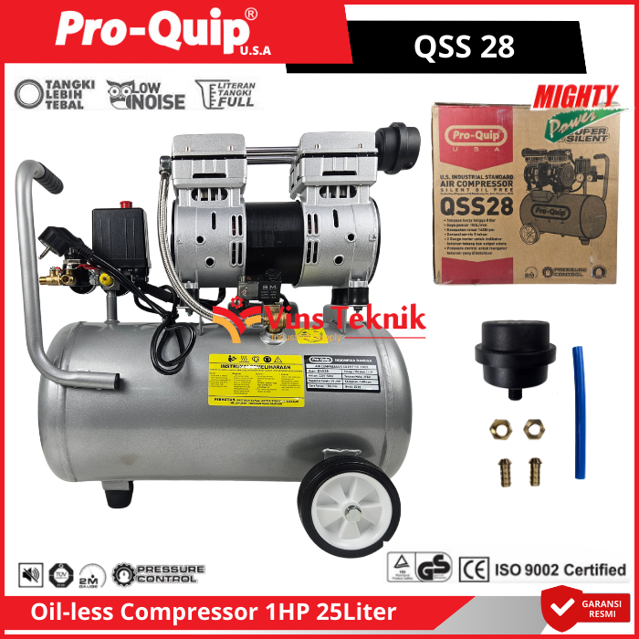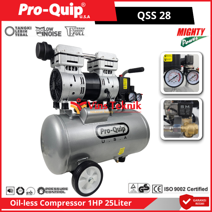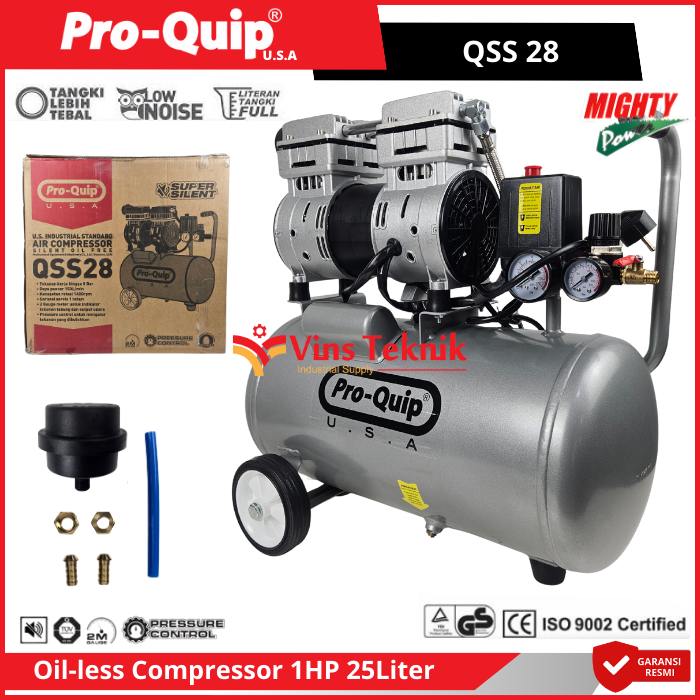 ProQuip QSS28 Mesin Kompresor Udara Compressor Silent Oilless 1HP 25Liter QSS 28