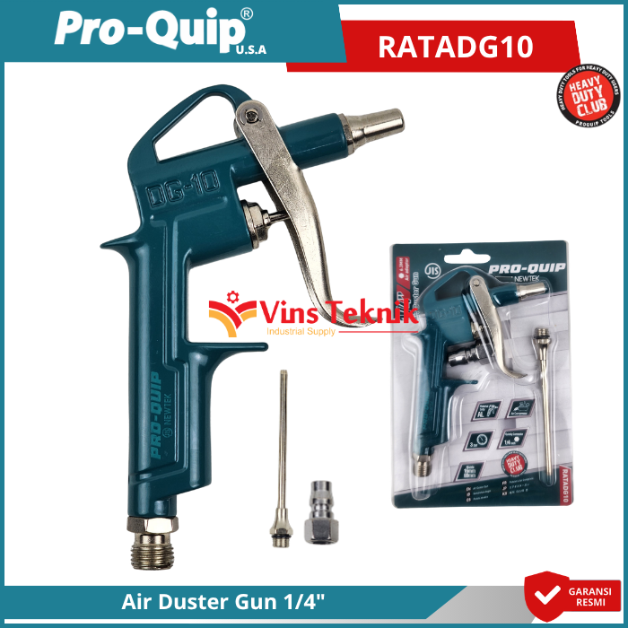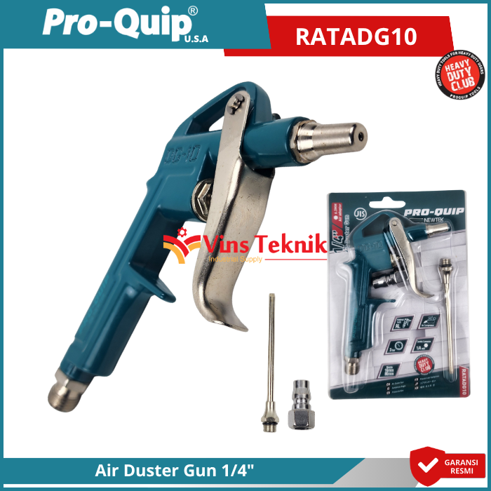Proquip Air Duster Gun RATADG10 adalah alat pembersih yang menggunakan udara bertekanan tinggi (semprotan angin) untuk menghilangkan debu dan kotoran di area yang sulit dijangkau