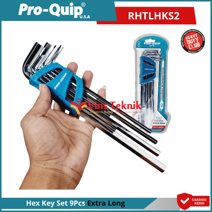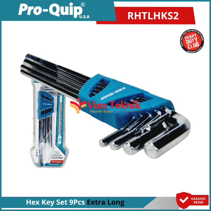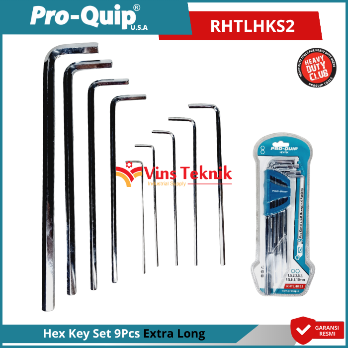 SPESIFIKASI : Merk : Pro-Quip Item Code : RHTLHKS2 Ukuran (9pcs) : 1.5, 2, 2.5, 3, 4, 5, 6, 8, 10 mm Bahan: S2 Steel (Mirror plating treatment) Dengan Kekerasan Hrc 58-62