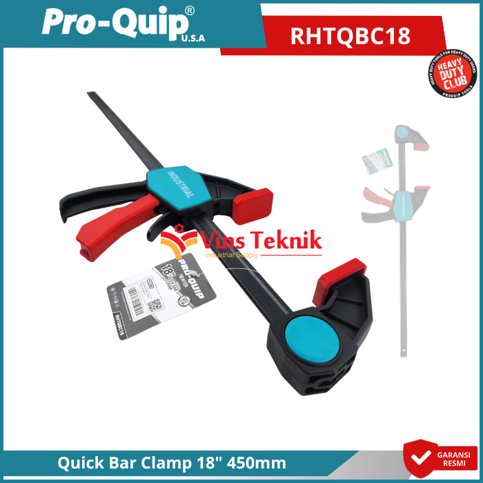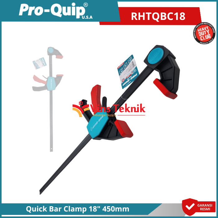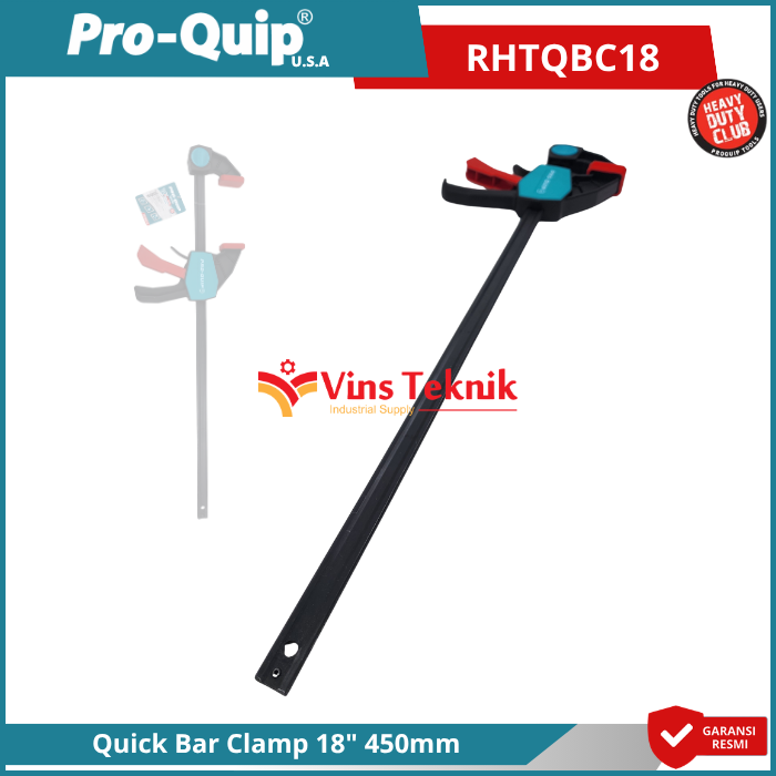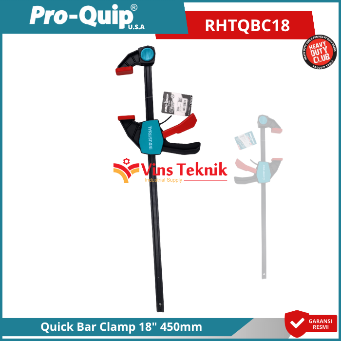 Pro-Quip RHTQBC18 adalah alat penjepit (klem) jenis Quick Bar Clamp yang dirancang untuk mempermudah pengerjaan kayu, perakitan, dan pengelasan dengan sistem penguncian cepat (quick release)