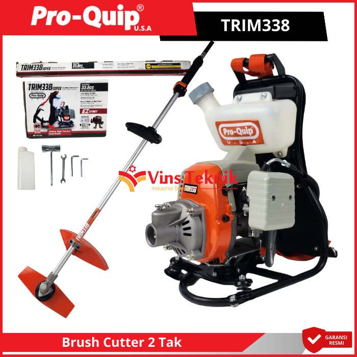 ProQuip TRIM338 adalah mesin potong rumput gendong (brush cutter) 2 tak yang dikenal karena performanya yang bertenaga dan desain ergonomis. Mesin ini dirancang untuk mempermudah pekerjaan perawatan taman atau area terbuka lainnya