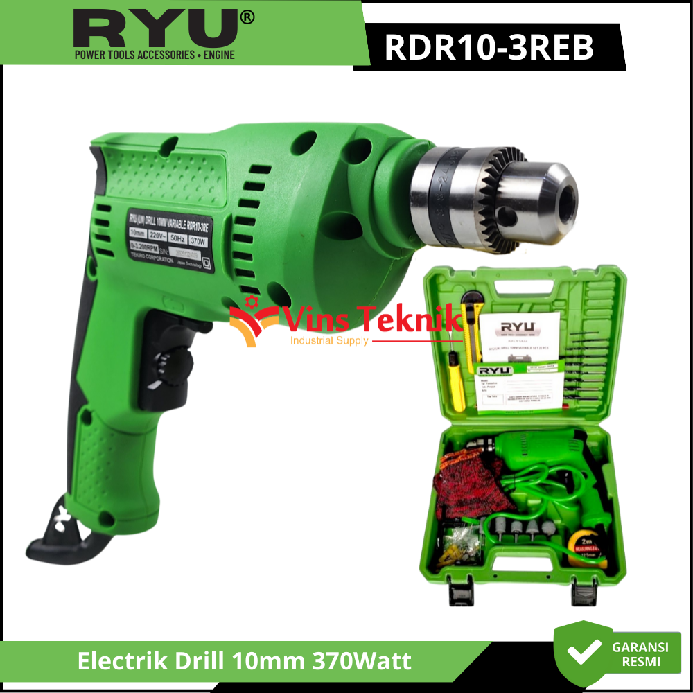 RYU RDR10-3REB Mesin Bor Set Electrik Drill 10mm 370Watt