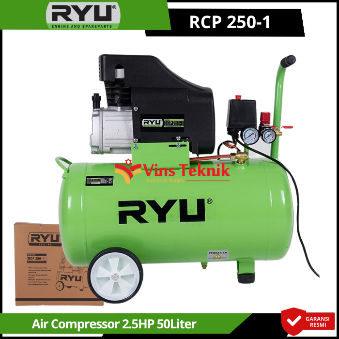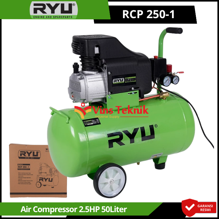 Mobilitas Mudah: Dilengkapi... Read More Kompresor RYU RCP250-1 adalah mesin kompresor angin bertenaga 2.5 HP dengan kapasitas tangki 50 liter yang dirancang untuk kebutuhan bengkel, industri ringan, maupun cuci kendaraan.