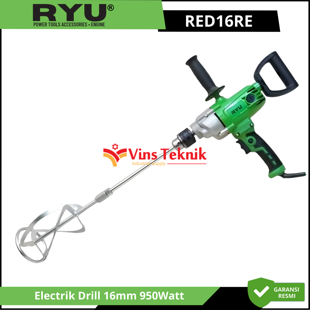 RYU RED16RE Mesin Bor Mixer Electrik Drill 16mm 950Watt