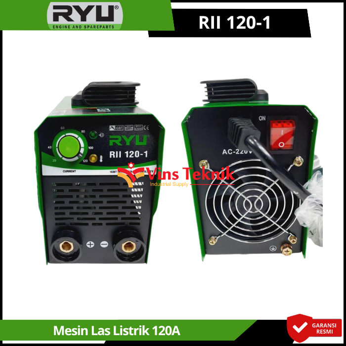 Teknologi : Sistem IGBT yang membantu menstabilkan... Read More Mesin las RYU RII 120-1 adalah mesin las inverter tipe MMA (Manual Metal Arc) yang dirancang untuk kebutuhan bengkel menengah hingga rumah tangga