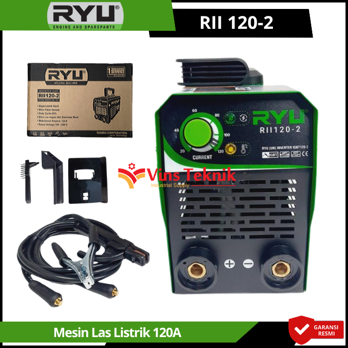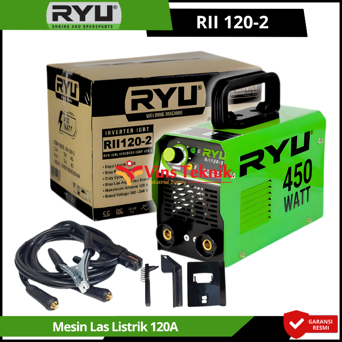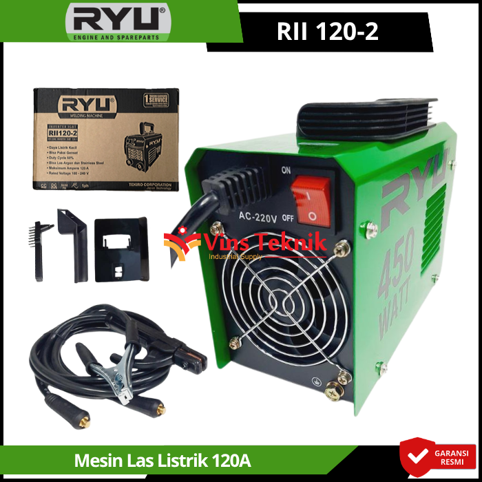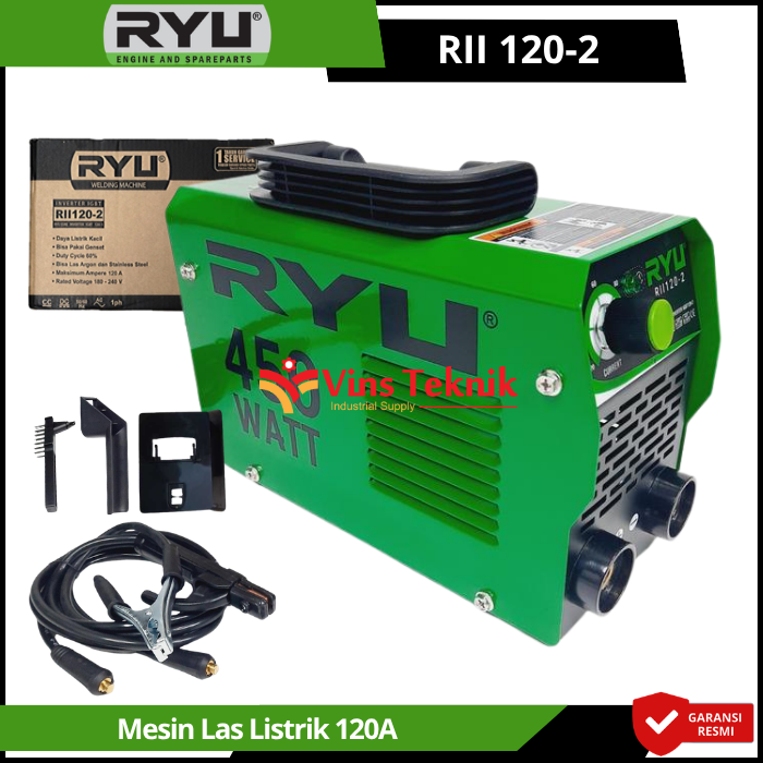 Efisiensi Pendinginan: Dilengkapi dengan kipas pendingin internal... Read More Mesin las RYU RII 120-2 adalah mesin trafo las inverter MMA dengan teknologi IGBT yang dirancang khusus untuk penggunaan daya listrik rendah (minimal 450 Watt), sehingga cocok untuk kebutuhan rumah tangga maupun perbengkelan ringan seperti pembuatan teralis atau kanopi.