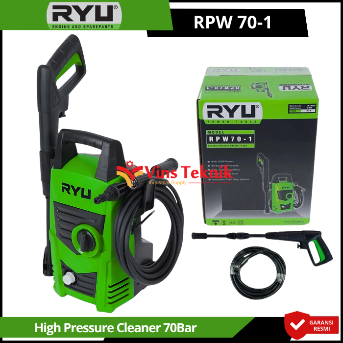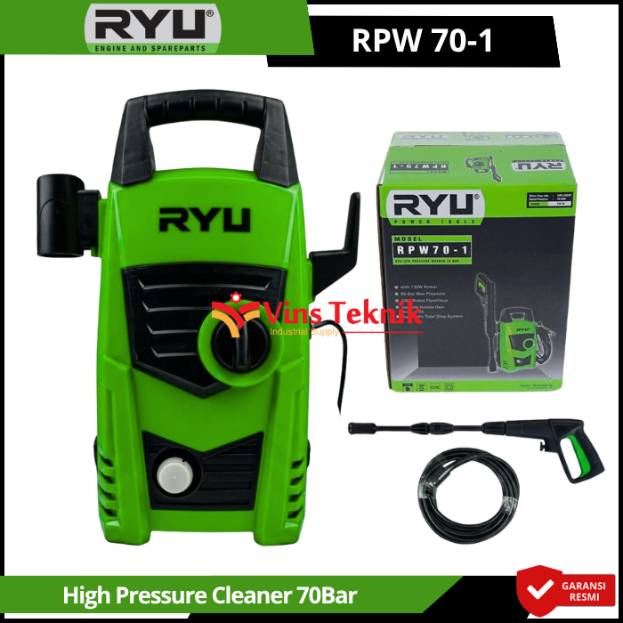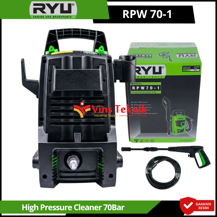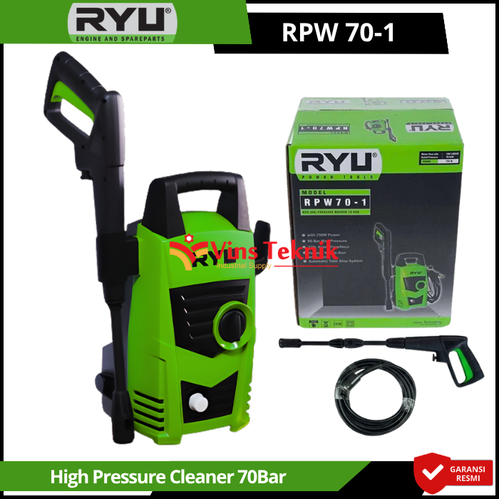 Aliran Air (Flow Rate) : 330 Liter per jam... Read More RYU RPW 70-1 adalah Automatic Total Stop System, yang secara otomatis mematikan mesin saat pelatuk gun dilepas untuk menghemat listrik dan menjaga keawetan motor