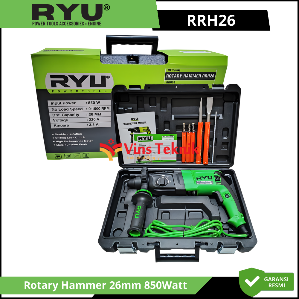 RYU RRH26 Mesin Bor Beton Rotary Hammer 26mm 850Watt