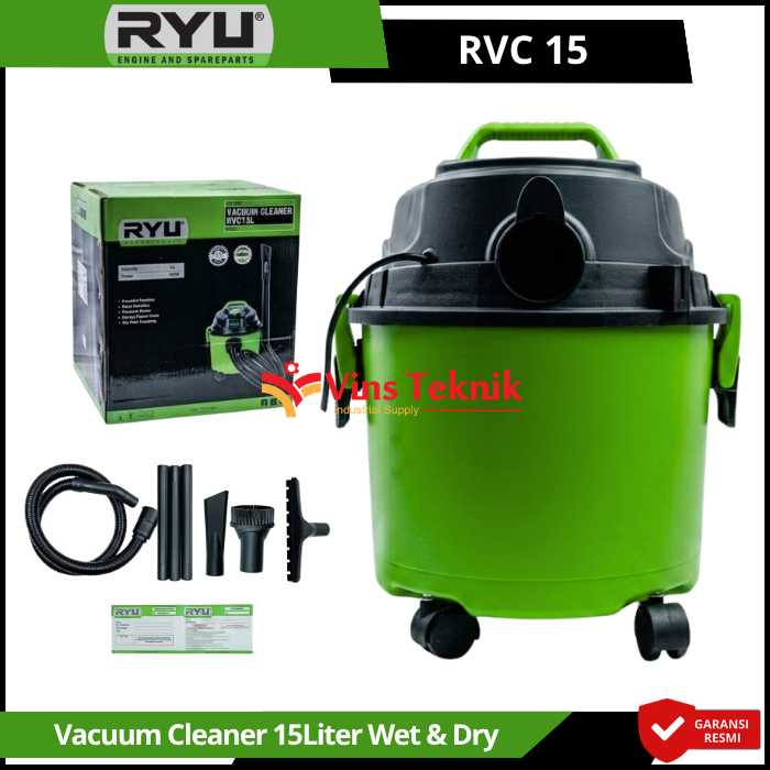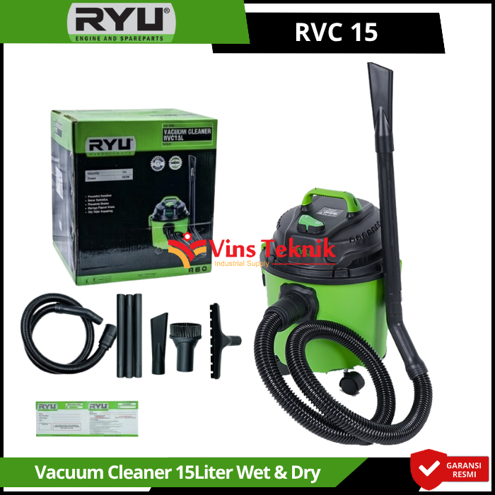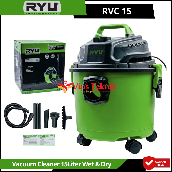 Ryu RVC 15 adalah mesin vacuum cleaner serbaguna 3-in-1 yang dirancang untuk menangani kotoran basah, kering, serta memiliki fungsi tiup (blower). Alat ini sangat populer untuk penggunaan rumah tangga, kantor, hingga area bengkel atau workshop.