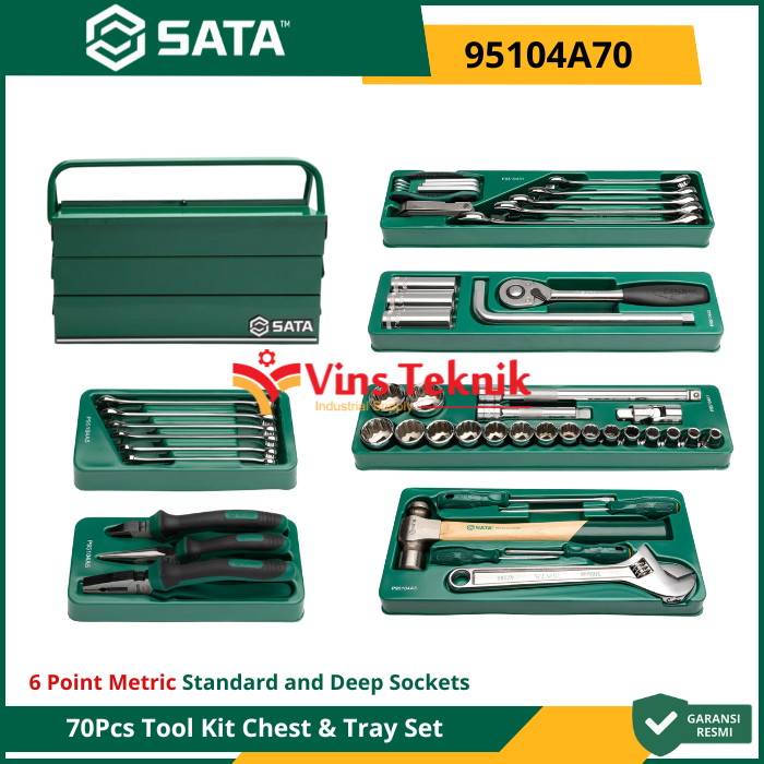 SATA 95104A70 Cantilever Tool Box Tool Kit Set 70Pcs Otomotif Tool Chest & Tray Set 6PT 95104A70-6