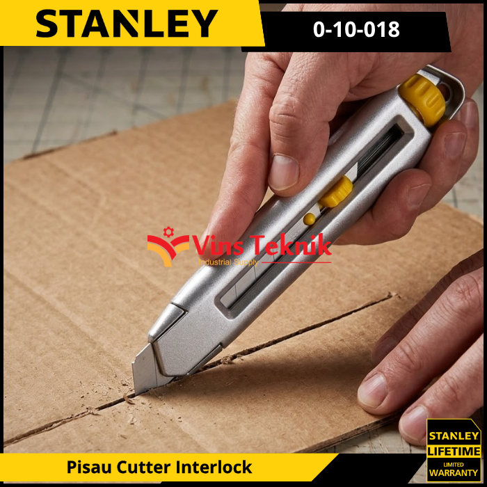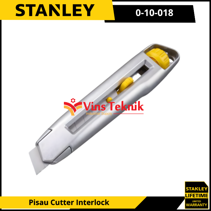 STANLEY 0-10-018 adalah pisau cutter InterLock 18mm Metal Snap-Off Knife yang dirancang untuk penggunaan profesional dan pengerjaan berat (heavy duty).
