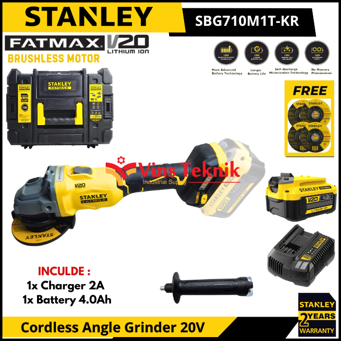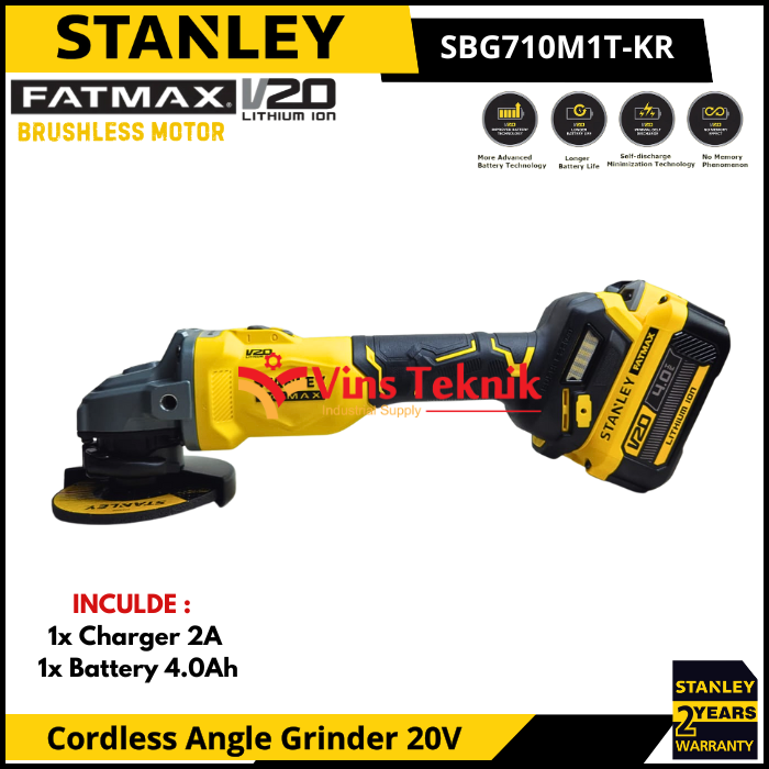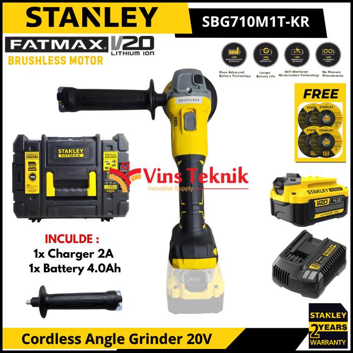 STANLEY SBG710M1TA Mesin Gerinda Baterai Cordless Angle Grinder 4" 100MM 20V SBG 710M1TA