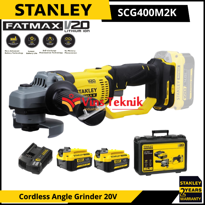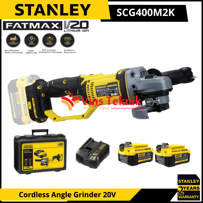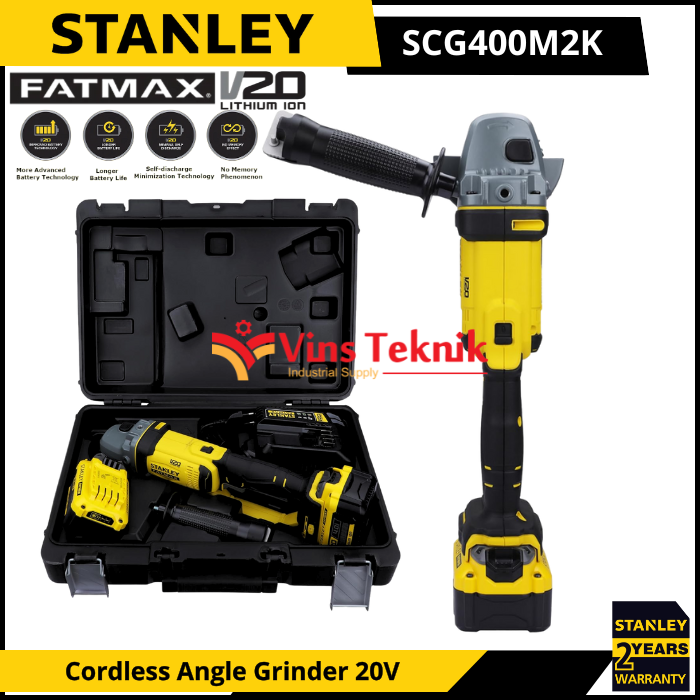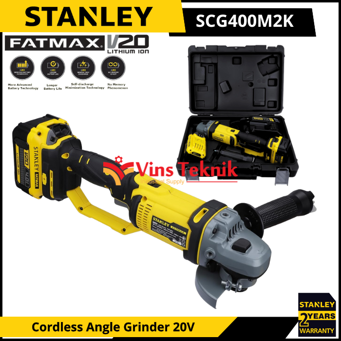STANLEY SCG400M2K Mesin Gerinda Baterai Cordless Angle Grinder 4" 100MM 20V SCG 400 M2K