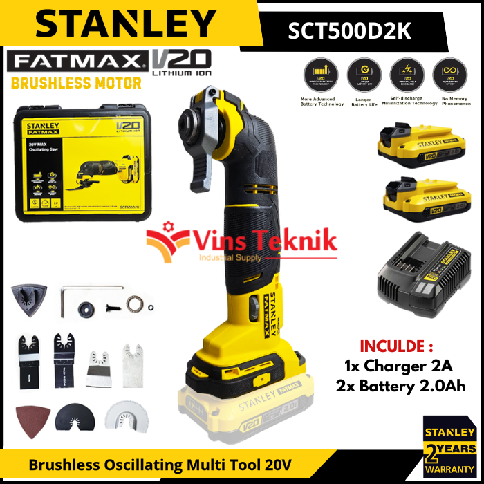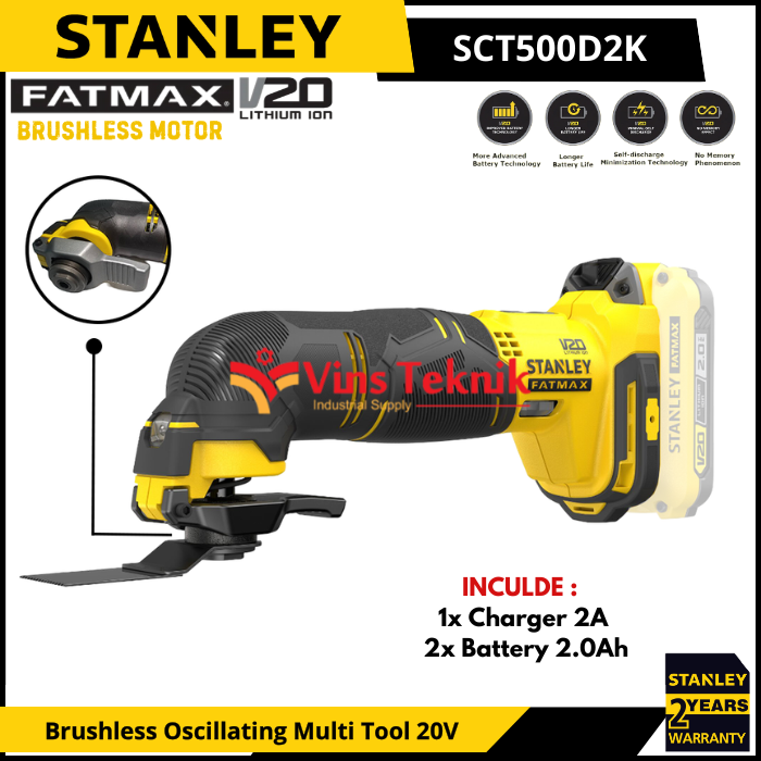 STANLEY SCT500D2K Mesin Serba Guna Oskilasi Cordless Brushless Oscillating Multi Tool 20V SCT 500