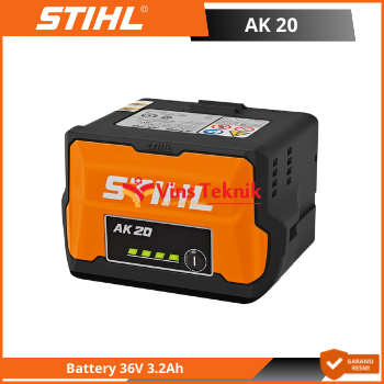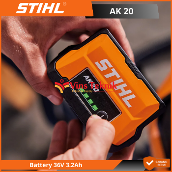 STIHL AK 20 adalah baterai lithium-ion 36 volt yang dirancang sebagai bagian dari sistem daya nirkabel STIHL COMPACT, cocok untuk berbagai peralatan berkebun rumahan. Baterai ini memiliki lampu LED indikator tingkat muatan dan kompatibel dengan beberapa pengisi daya STIHL