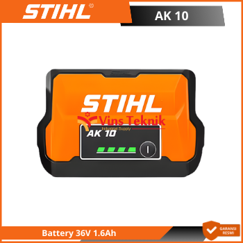STIHL AK 10 adalah baterai lithium-ion kompak 36 V yang dirancang untuk digunakan dengan peralatan dalam Sistem Baterai AK STIHL yang ditujukan bagi pemilik rumah. Baterai ini ringan dan menyediakan daya penuh yang konsisten selama waktu pengoperasiannya