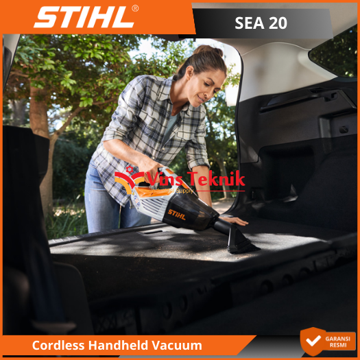 STIHL SEA 20 adalah penyedot debu genggam nirkabel yang ringkas dan ringan, dirancang khusus untuk membersihkan area kering yang lebih kecil seperti di dalam mobil, garasi, atau bengkel. Alat ini merupakan bagian dari sistem baterai AS STIHL yang dapat ditukar-tukar