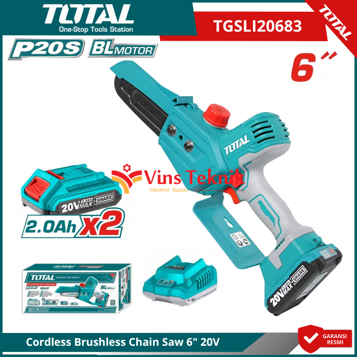 Rem Elektronik : Fitur penghenti rantai... Read More TOTAL TGSLI20683 adalah gergaji mesin mini nirkabel (cordless mini chain saw) bertenaga baterai 20V yang dirancang untuk pemangkasan dahan dan ranting pohon secara praktis