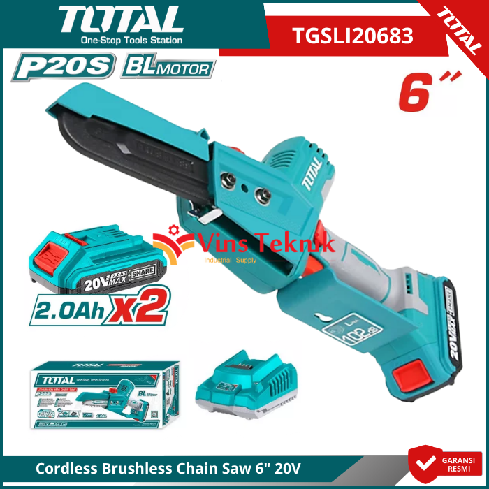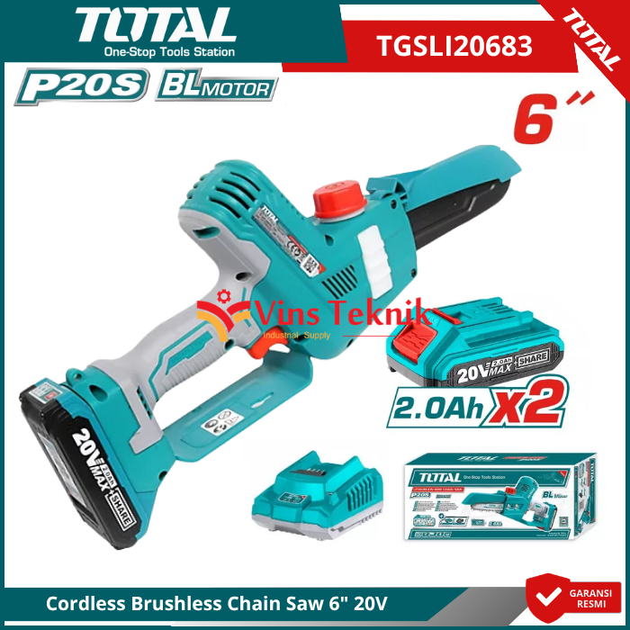 TOTAL TGSLI20683 Mesin Gergaji Potong Kayu Baterai Cordless Brushless ChainSaw Chain Saw 6" 20V TGSLI 20683
