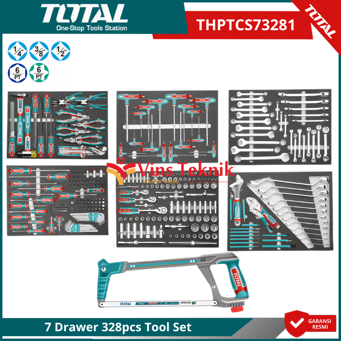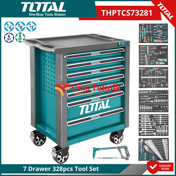 TOTAL THPTCS73281 Tool Chest Set 328Pcs Tool Set Kit ToolBox Tool Box Trolly Kabinet 7 Drawer