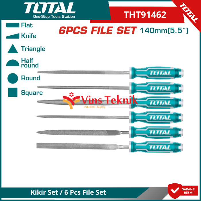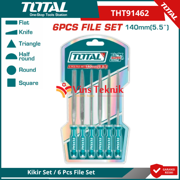 - Half... Read More TOTAL THT91462 adalah set kikir besi mini (needle file set) berisi 6 buah yang dirancang untuk pekerjaan presisi pada material seperti logam, kayu, dan plastik.
