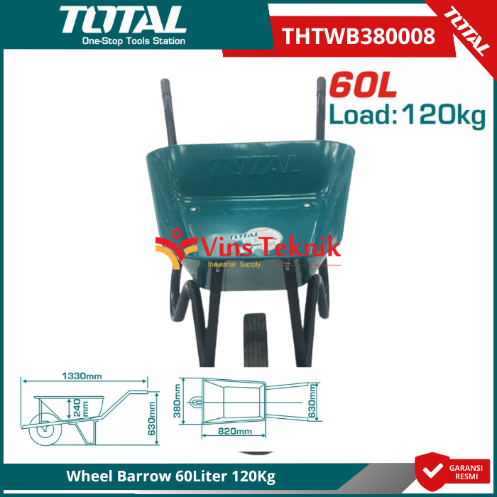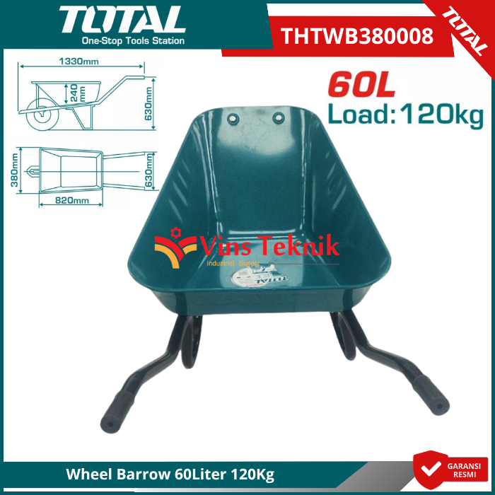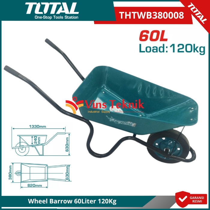 TOTAL THTWB380008 Adalah sebuah gerobak sorong (wheel barrow) yang dirancang untuk keperluan konstruksi dan kebun