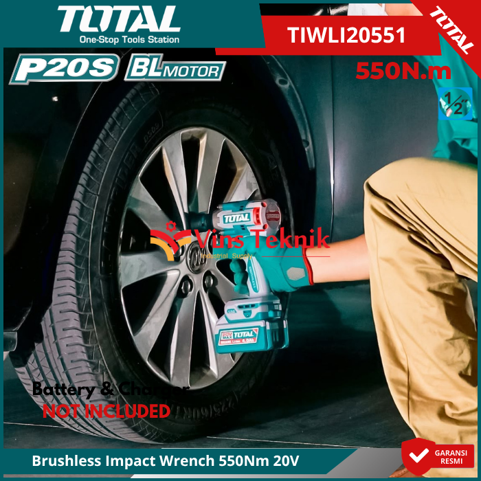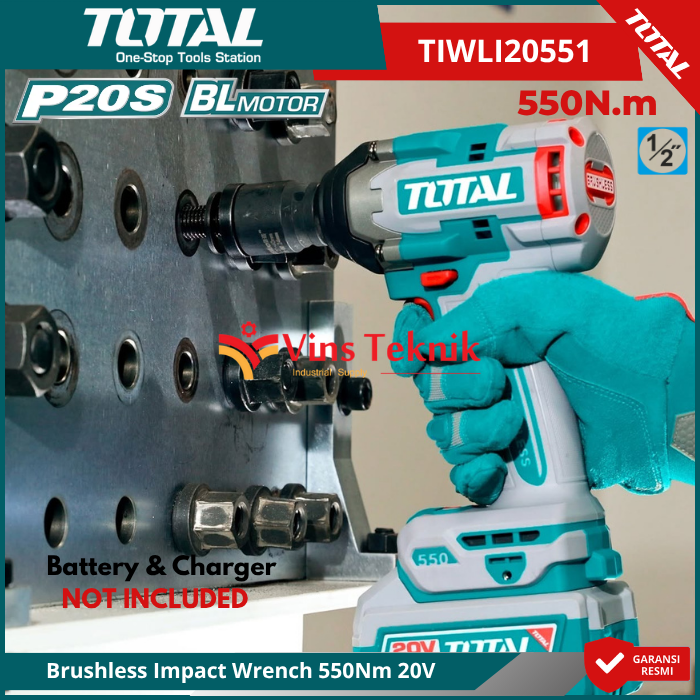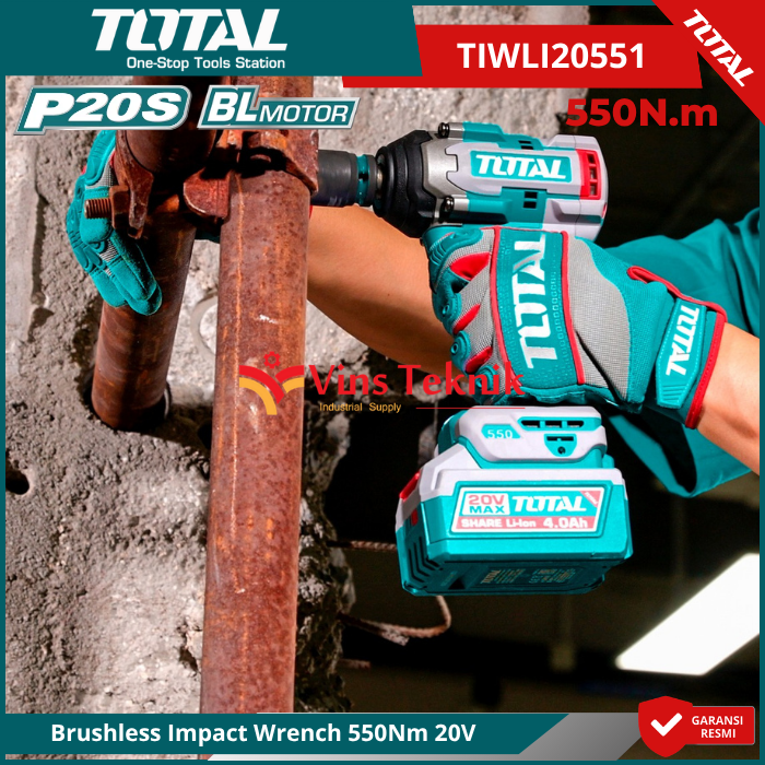 Total Impact Wrench TIWLI20551 adalah mesin pembuka baut nirkabel (cordless) yang ditenagai oleh teknologi Brushless Motor untuk performa yang lebih efisien dan tahan lama. Alat ini dirancang untuk penggunaan berat (heavy-duty) seperti perbaikan otomotif, konstruksi, dan pemeliharaan industri