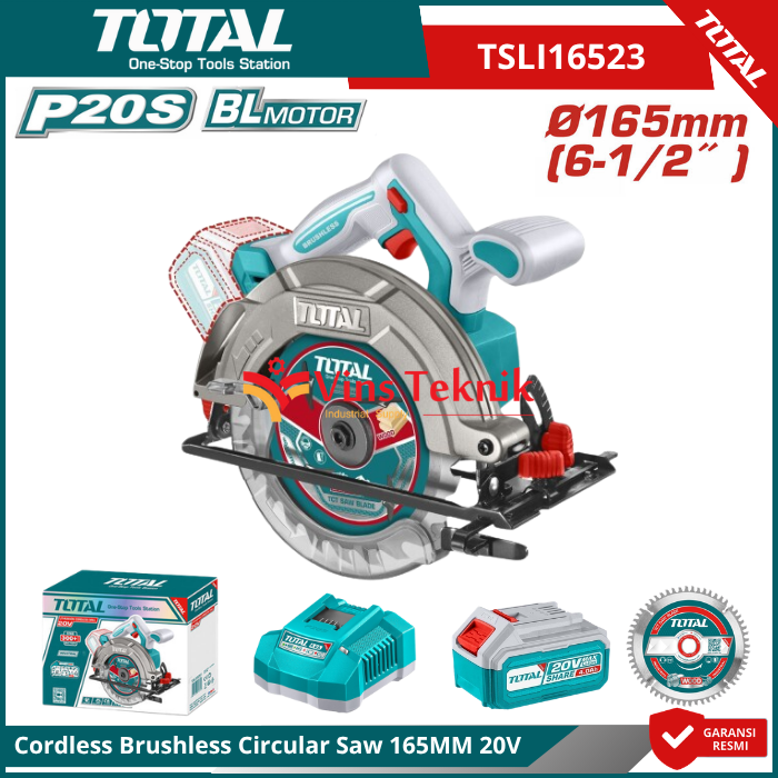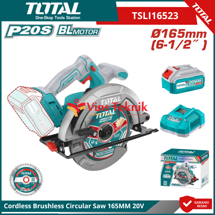 TOTAL TSLI16523 Mesin Gergaji Kayu Cordless Brushless Compact Circular Saw 6.5" 165MM 20V TSLI 16523